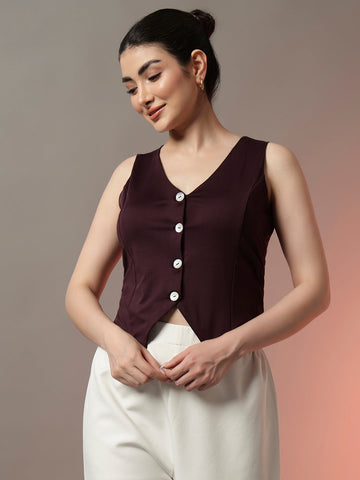 Elevate your layering game with this Wine V-Neck Woven Waistcoat. Crafted with a textured woven...