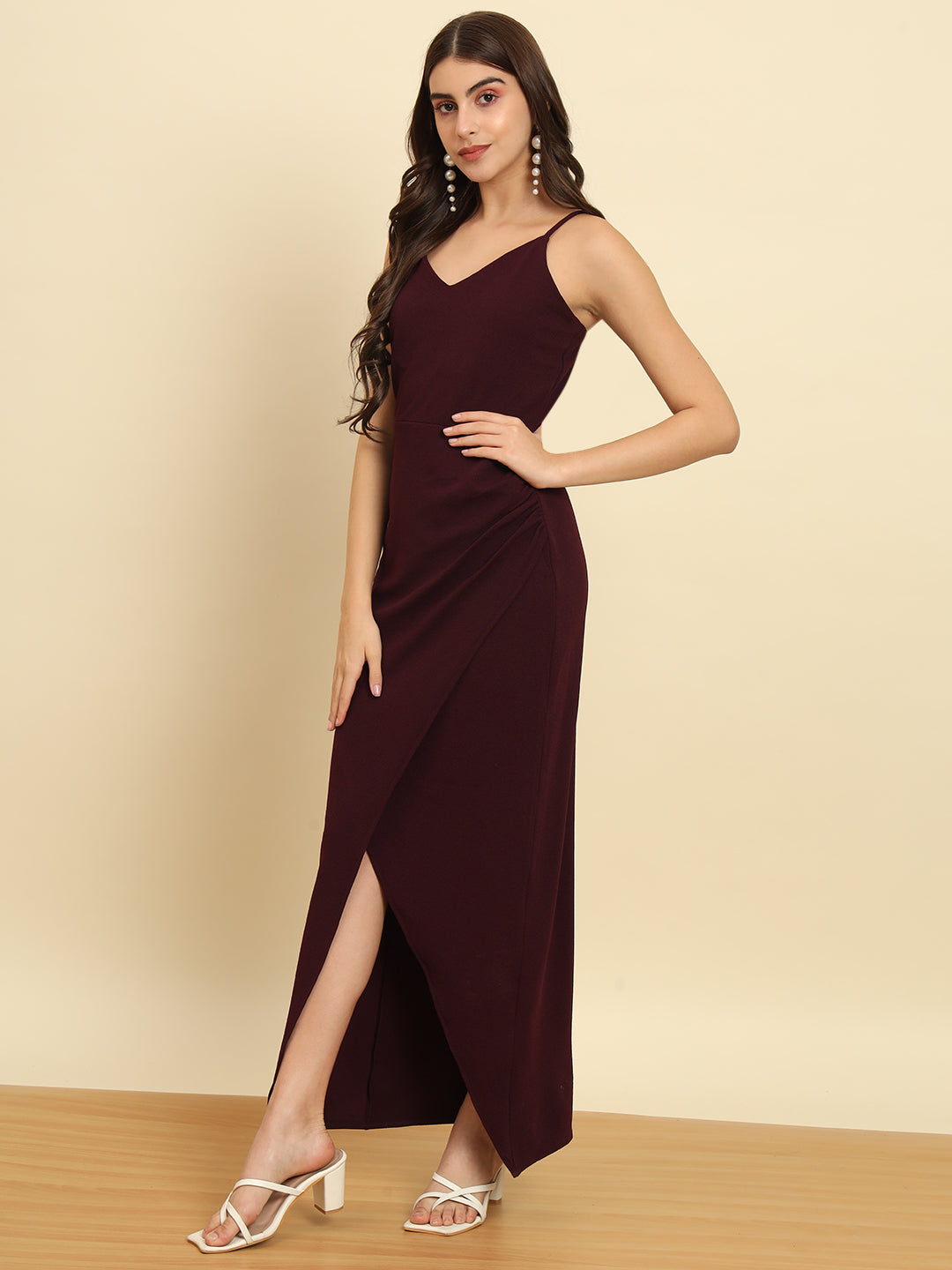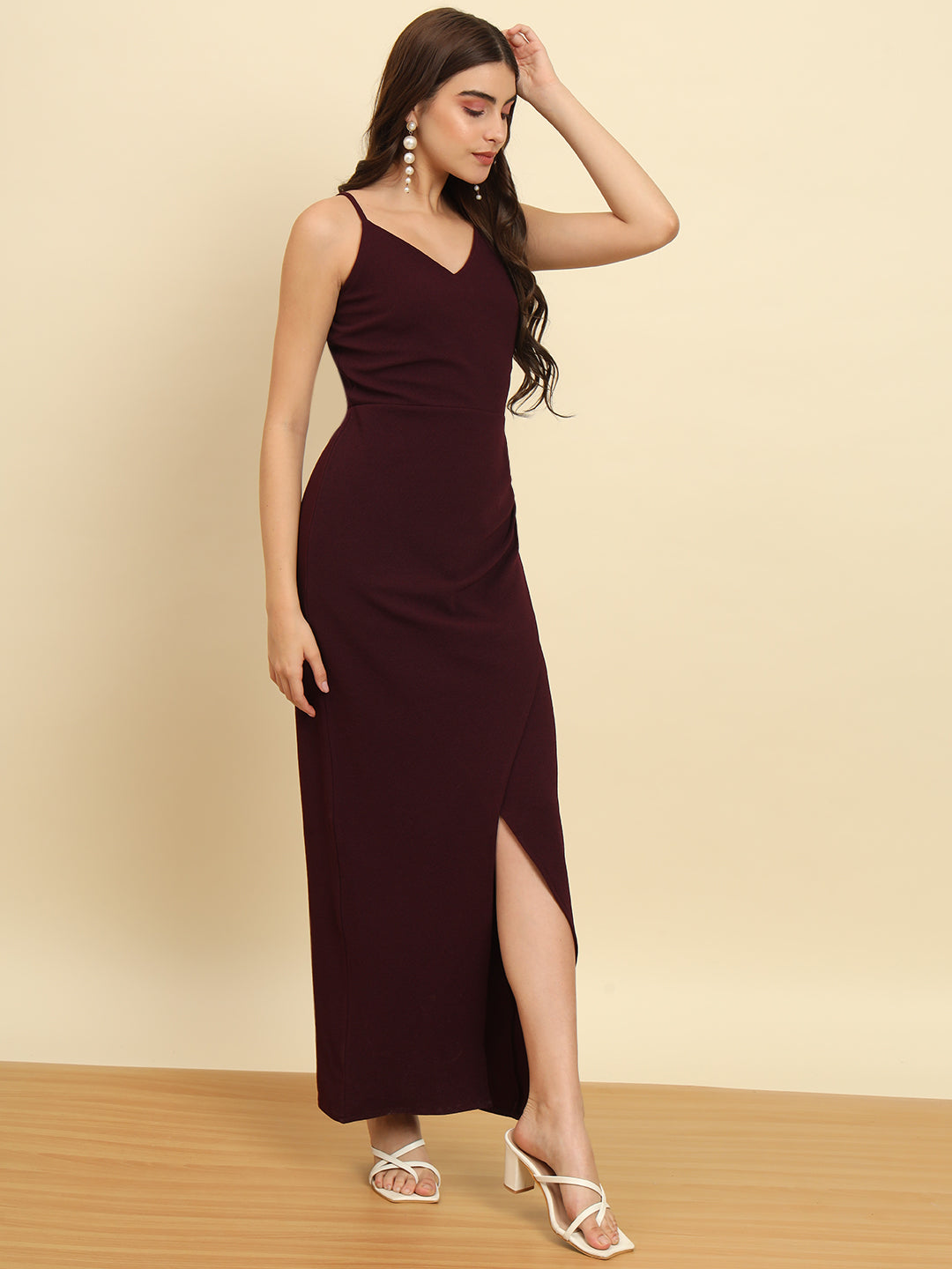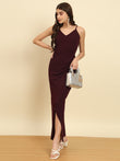 - 💃 Stylish & Elegant Design – This burgundy split thigh bodycon dress features a sleek silhouette with a flattering front slit, perfect for turning heads at parties, date nights, or festive gatherings.