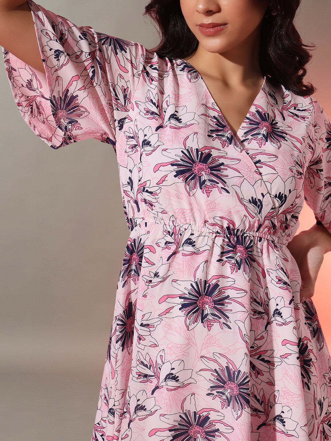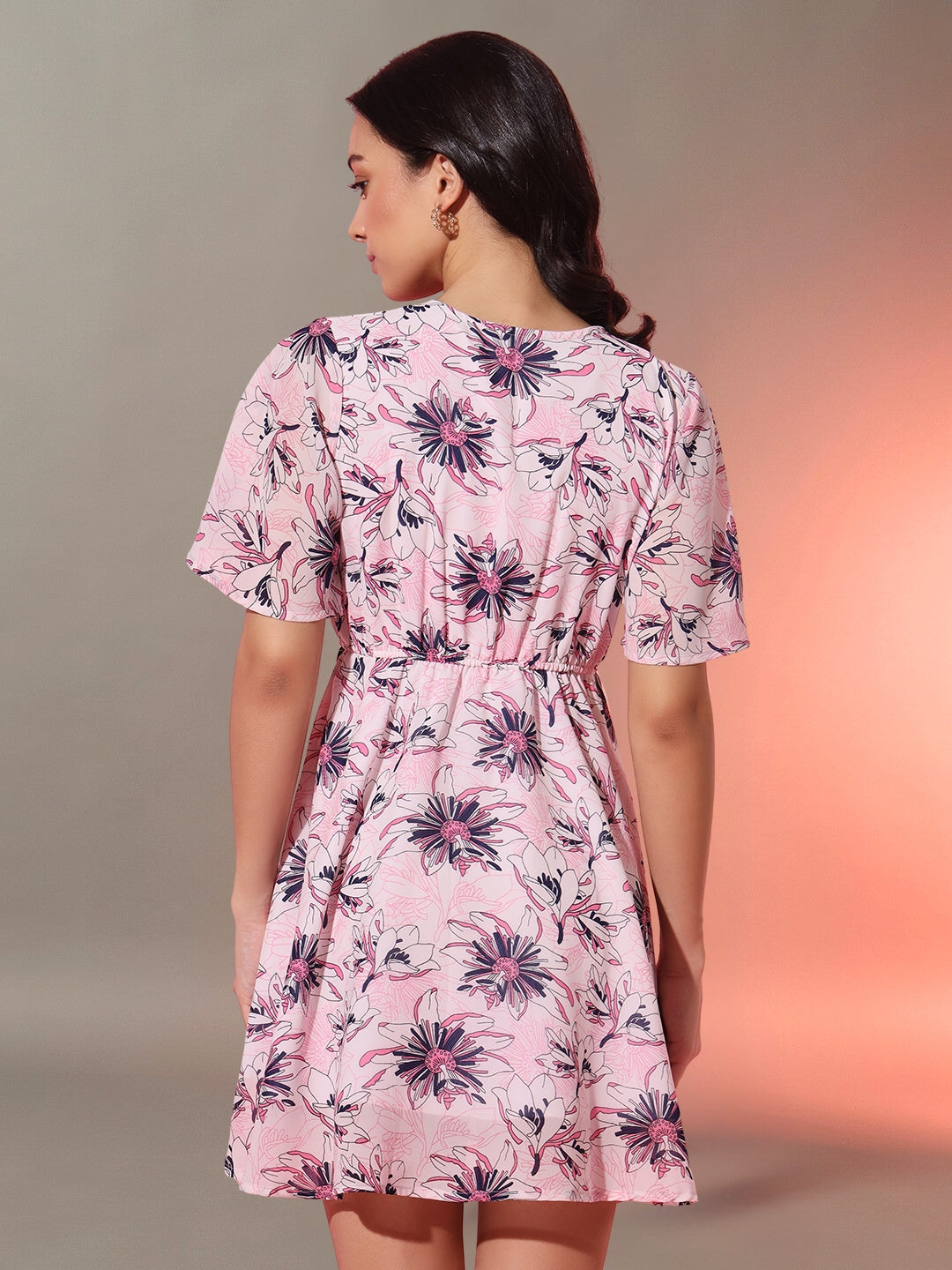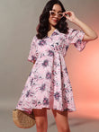 Overlaped Floral Short Dress
