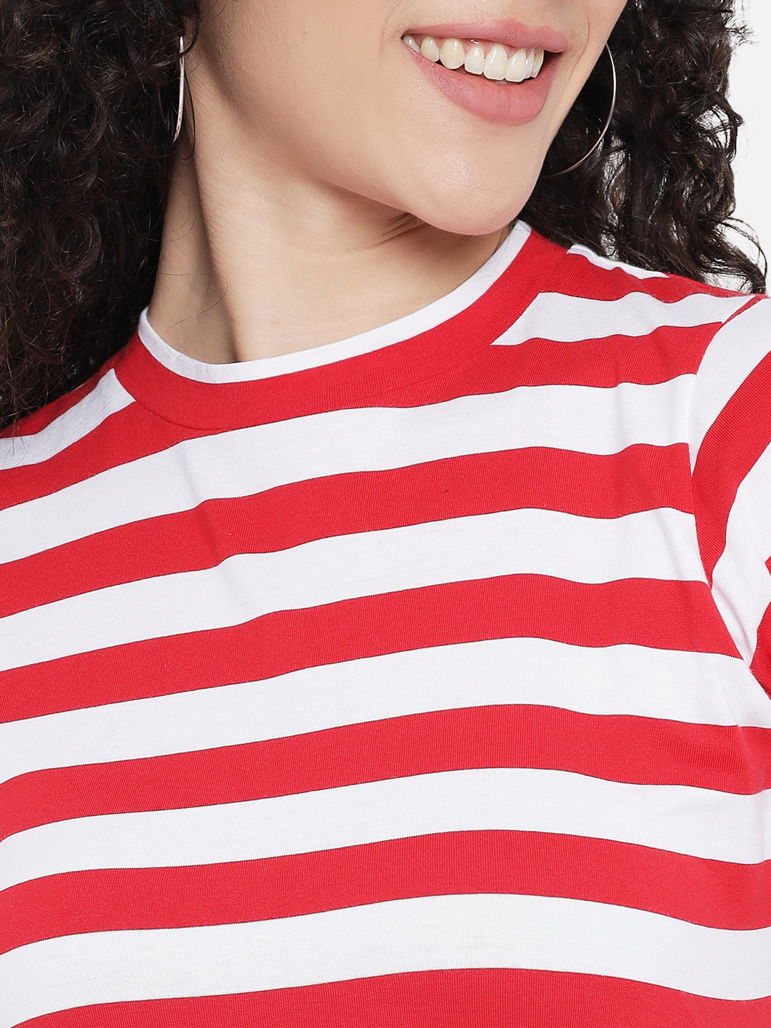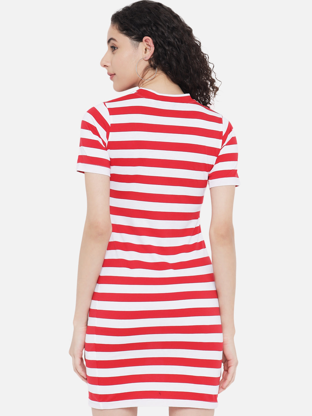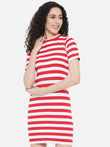 Add an extra dose of style to your casual wardrobe with this Red & White Stripe Dress from Trend Arrest. Made from Cotton fabric, which will keep you sweat free all day long. This A Line dress boasts of chic charm. Make heads turn by teaming this dress with a pair of stilettos.
