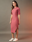 This stunning pink long slit dress features a figure-flattering silhouette, with a daring thigh-high slit for added allure. Crafted from luxurious fabric, it combines elegance and boldness, perfect for any glamorous evening event.