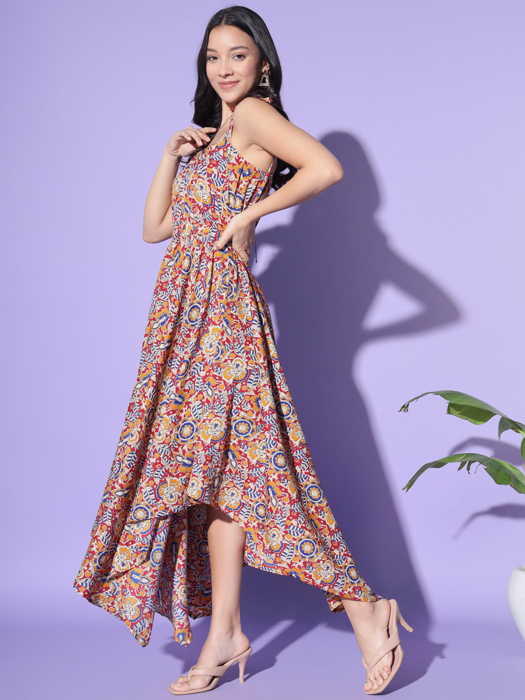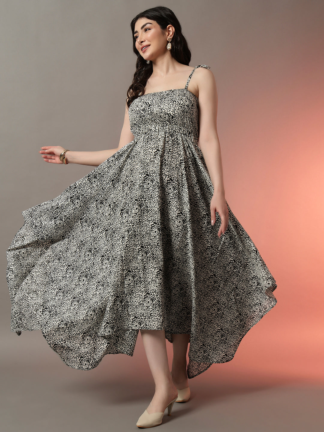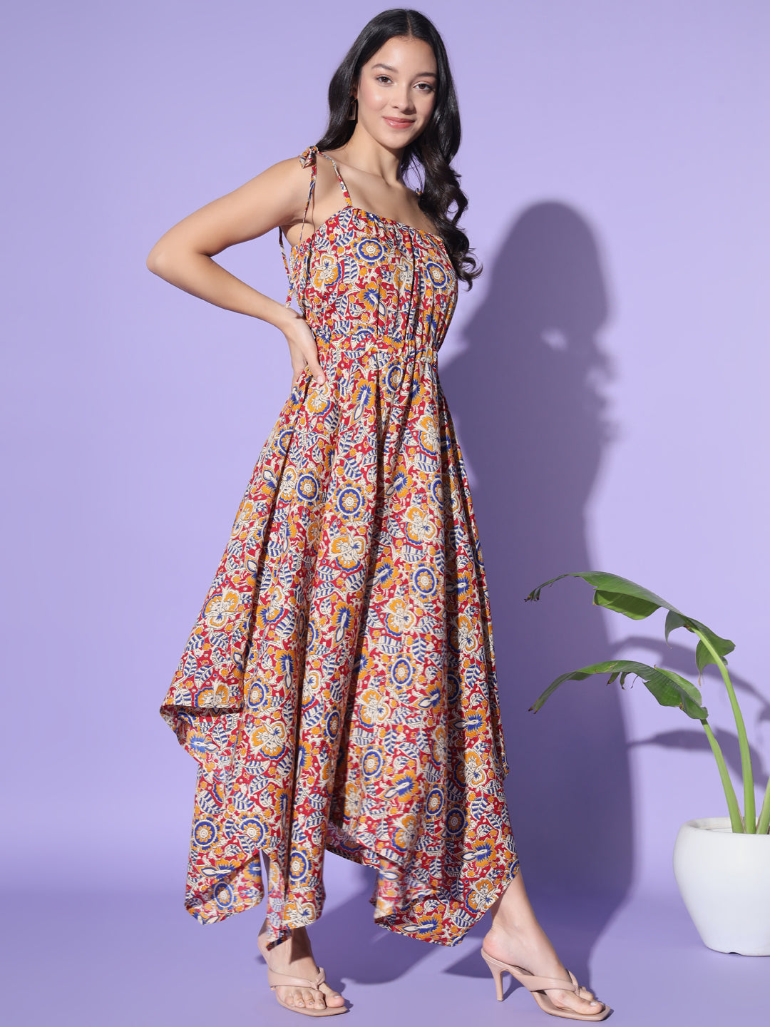 Add an extra dose of style to your casual wardrobe with this Printed Handkerchief Hem Dress from Trend Arrest. Made from fine fabric, which will keep you sweat free all day long. This Fit & Flare dress boasts of chic charm. Make heads turn by teaming this dress with a pair of stilettos.