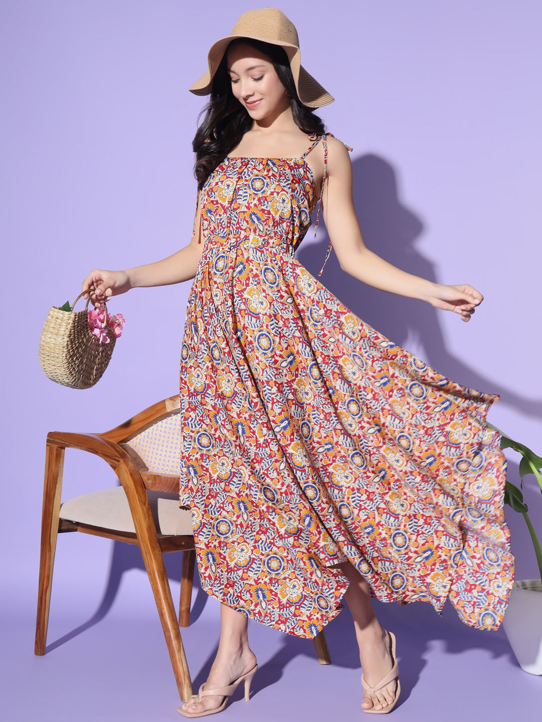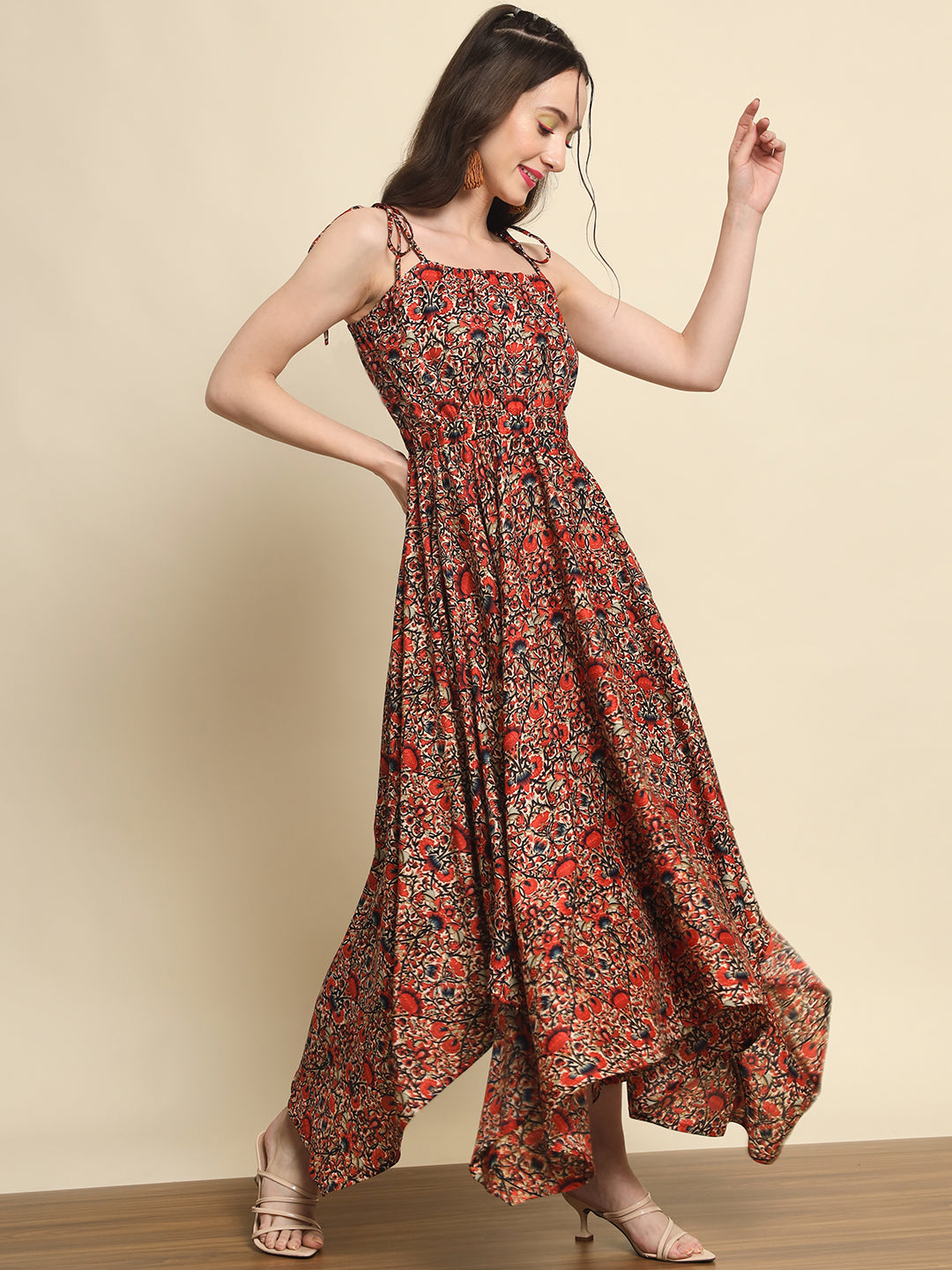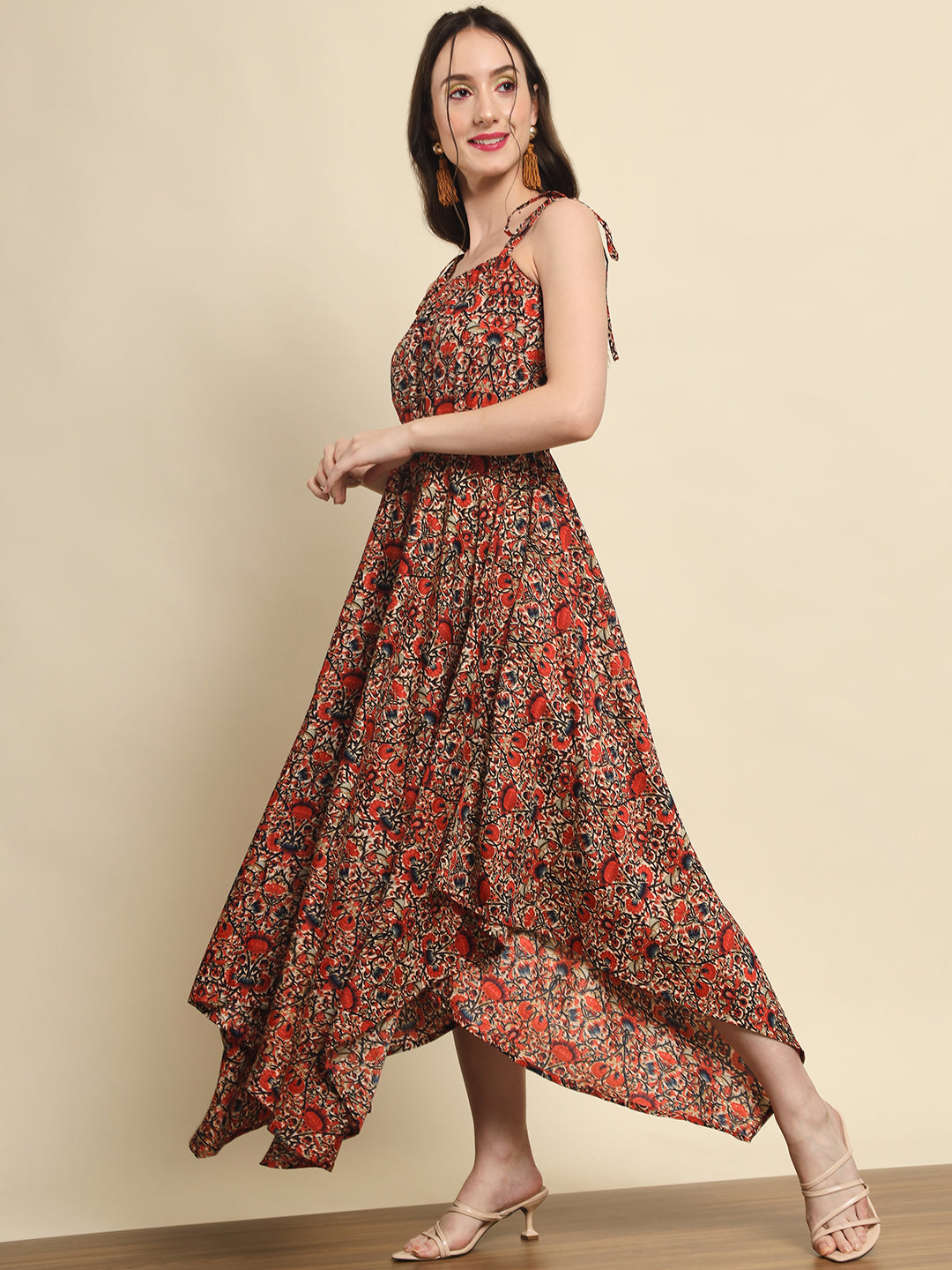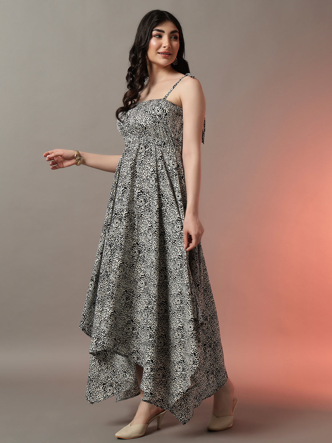 Add an extra dose of style to your casual wardrobe with this Printed Handkerchief Hem Dress from Trend Arrest. Made from fine fabric, which will keep you sweat free all day long. This Fit & Flare dress boasts of chic charm. Make heads turn by teaming this dress with a pair of stilettos.