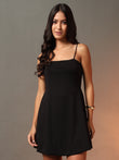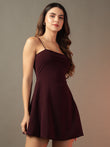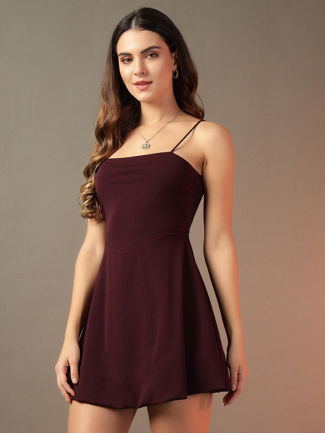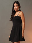Step into effortless style with this Noodle Strap Flare Dress. Featuring delicate straps, a fitted bodice, and a flared skirt, it is perfect for sunny days or casual outings, blending comfort and charm in a breezy, feminine design.