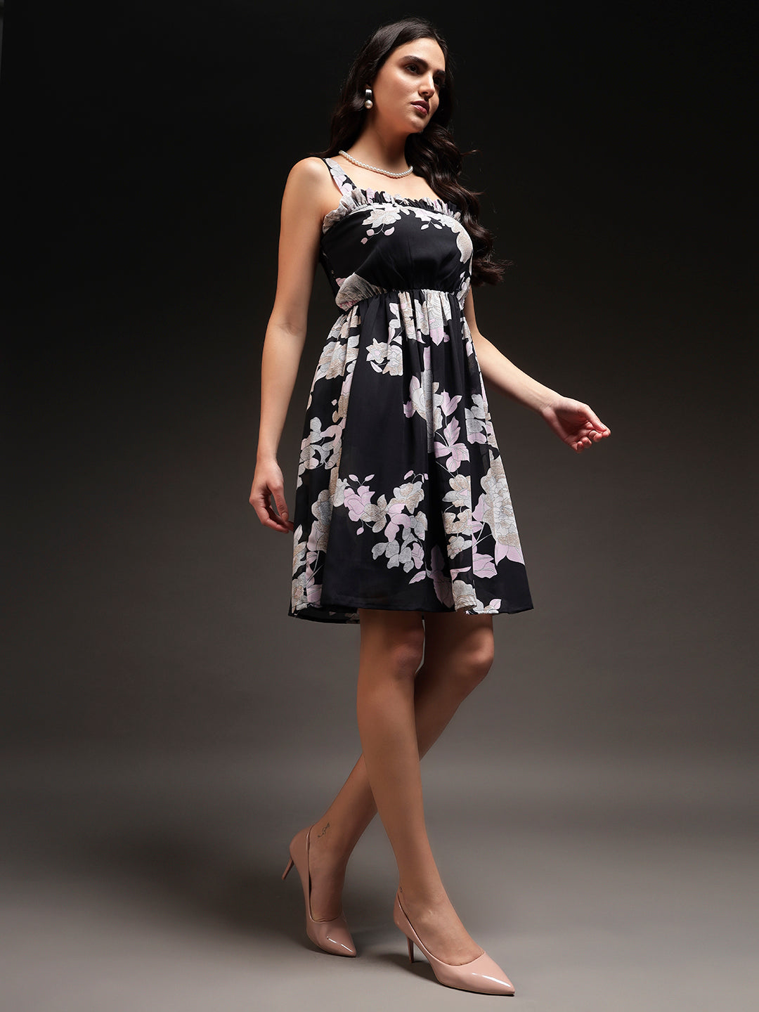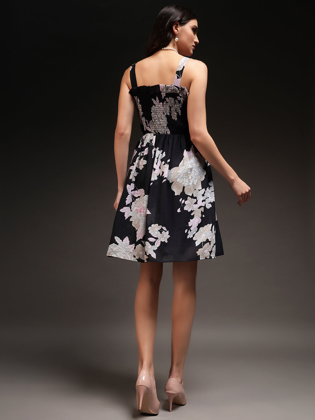 ?? Turn Heads in Sophisticated Style! Step out in this chic navy blue mini dress featuring elegant floral prints in blush and ivory, designed for modern women who value both comfort and style. The premium rayon fabric ensures breathable wear, while the flattering fit & flare silhouette with a smocked back accentuates your natural curves.