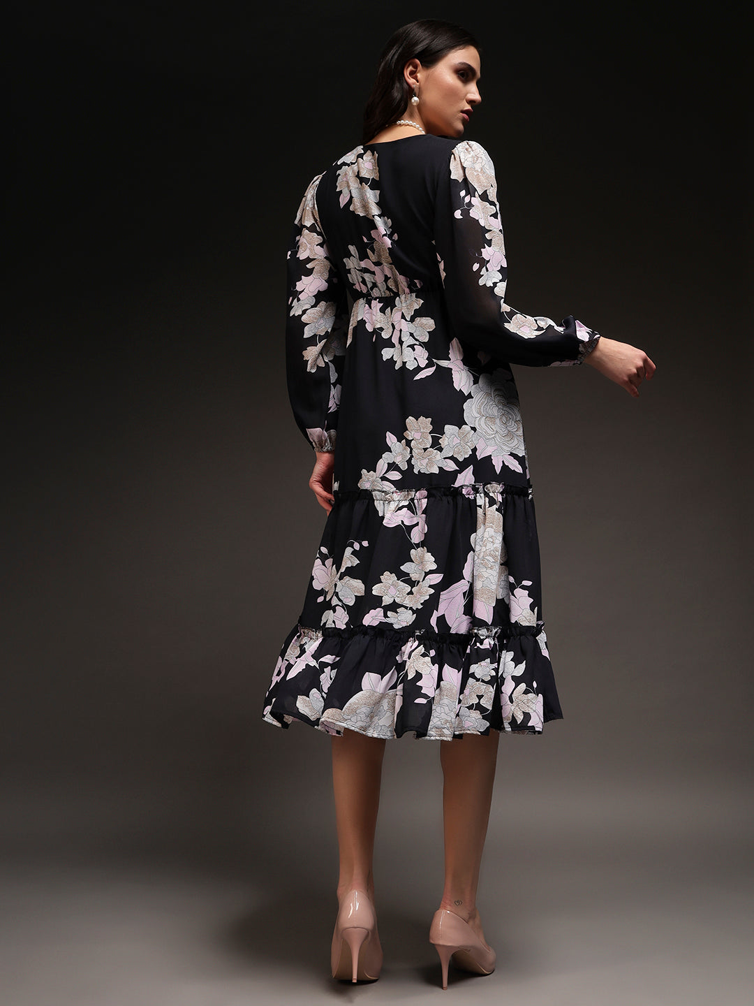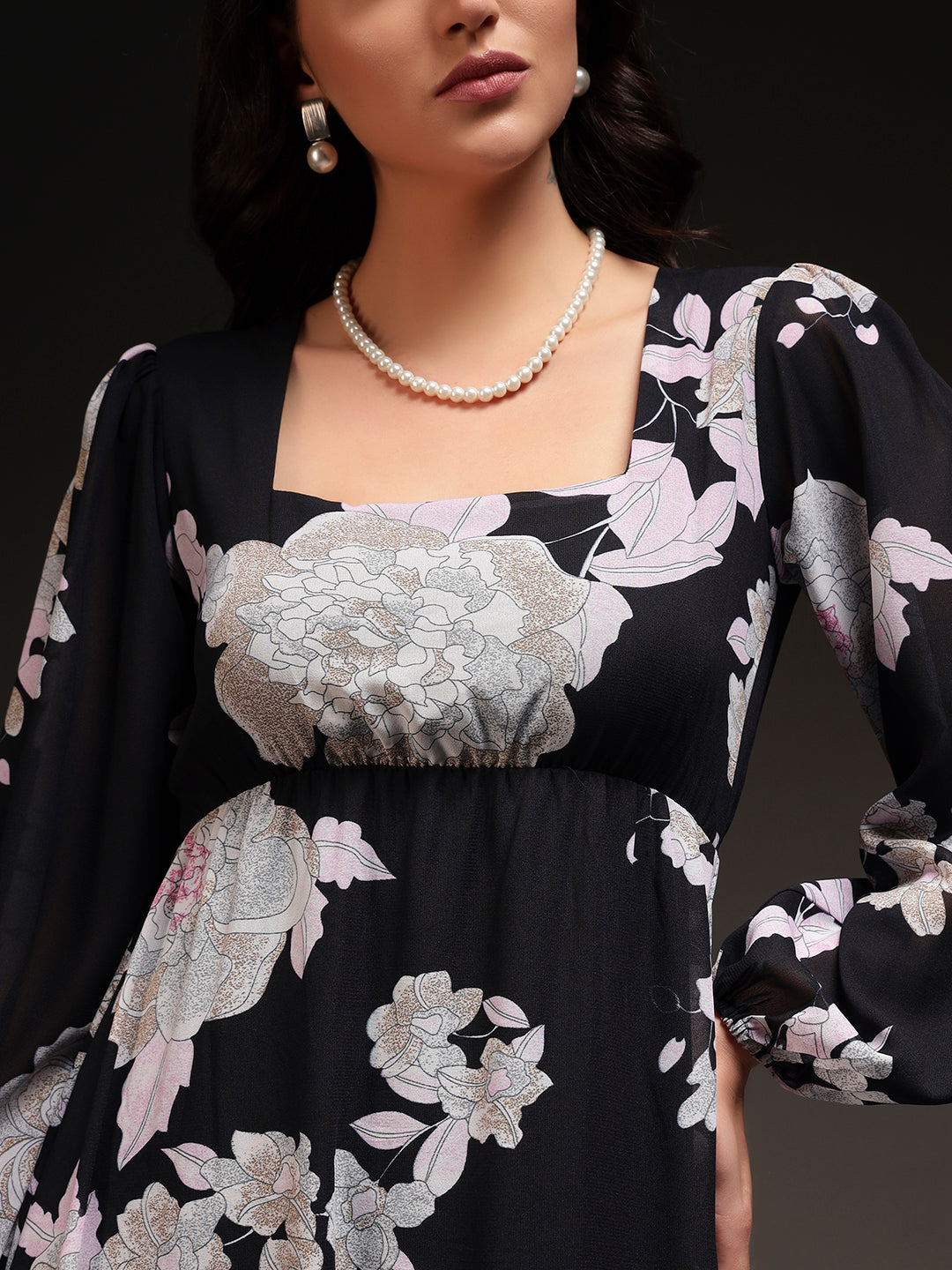 Trend Arrest Women Square Neck Floral Tiered Dress
