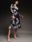 ?? Celebrate Style & Comfort! Step into elegance with this navy blue floral tiered midi dress, featuring stunning pastel florals and a chic square neckline. The voluminous long sleeves and elastic cuffs bring drama and ease, while the flowy tiered skirt ensures you twirl gracefully wherever you go.