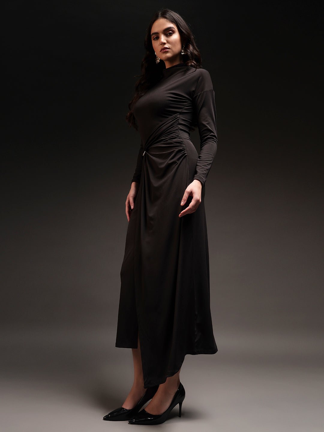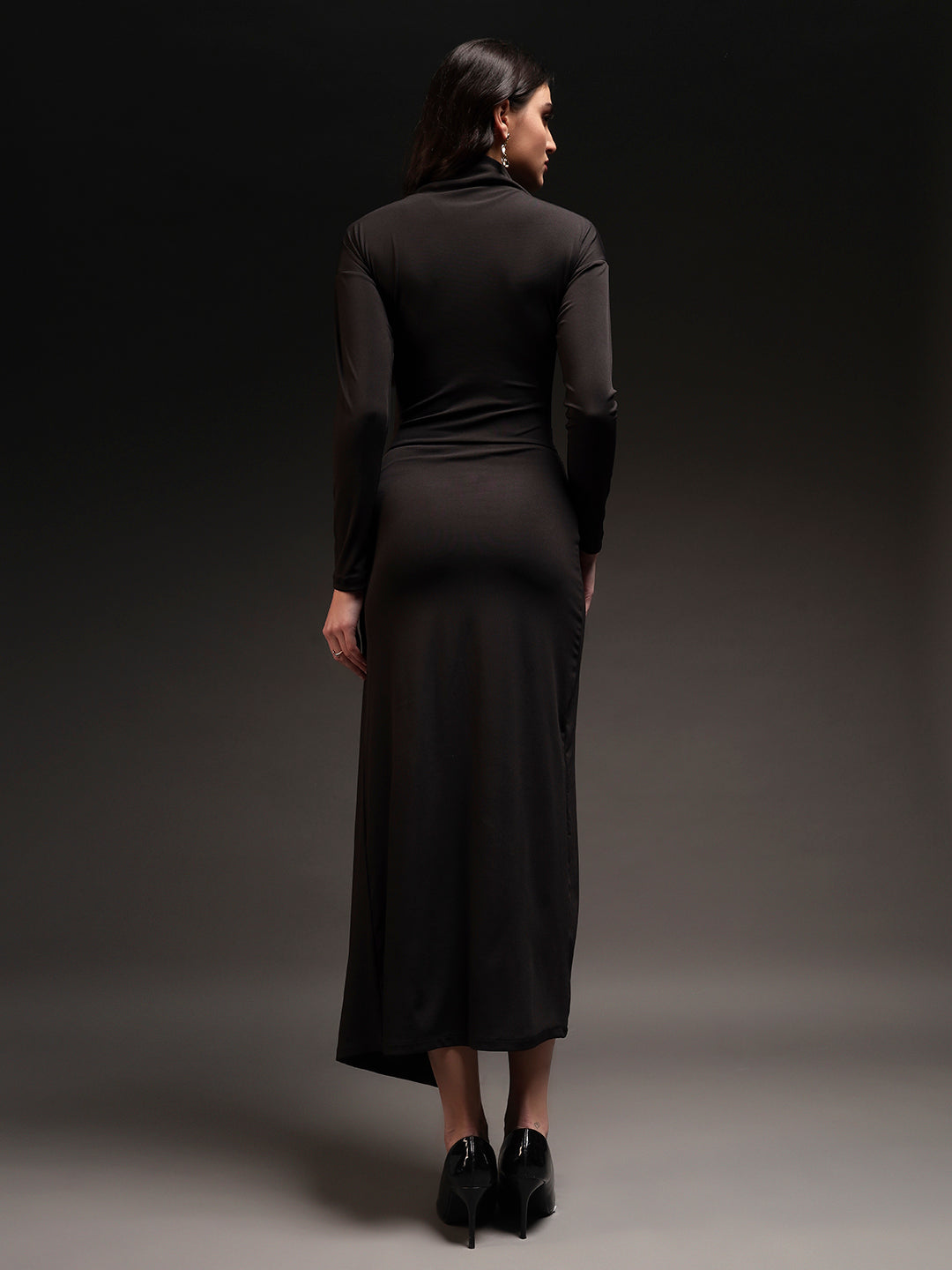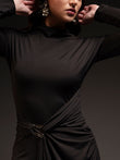 Trend Arrest Women High Neck Maxi Dress With Gold Buckle