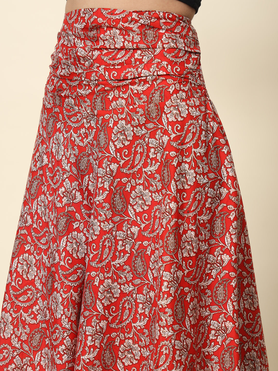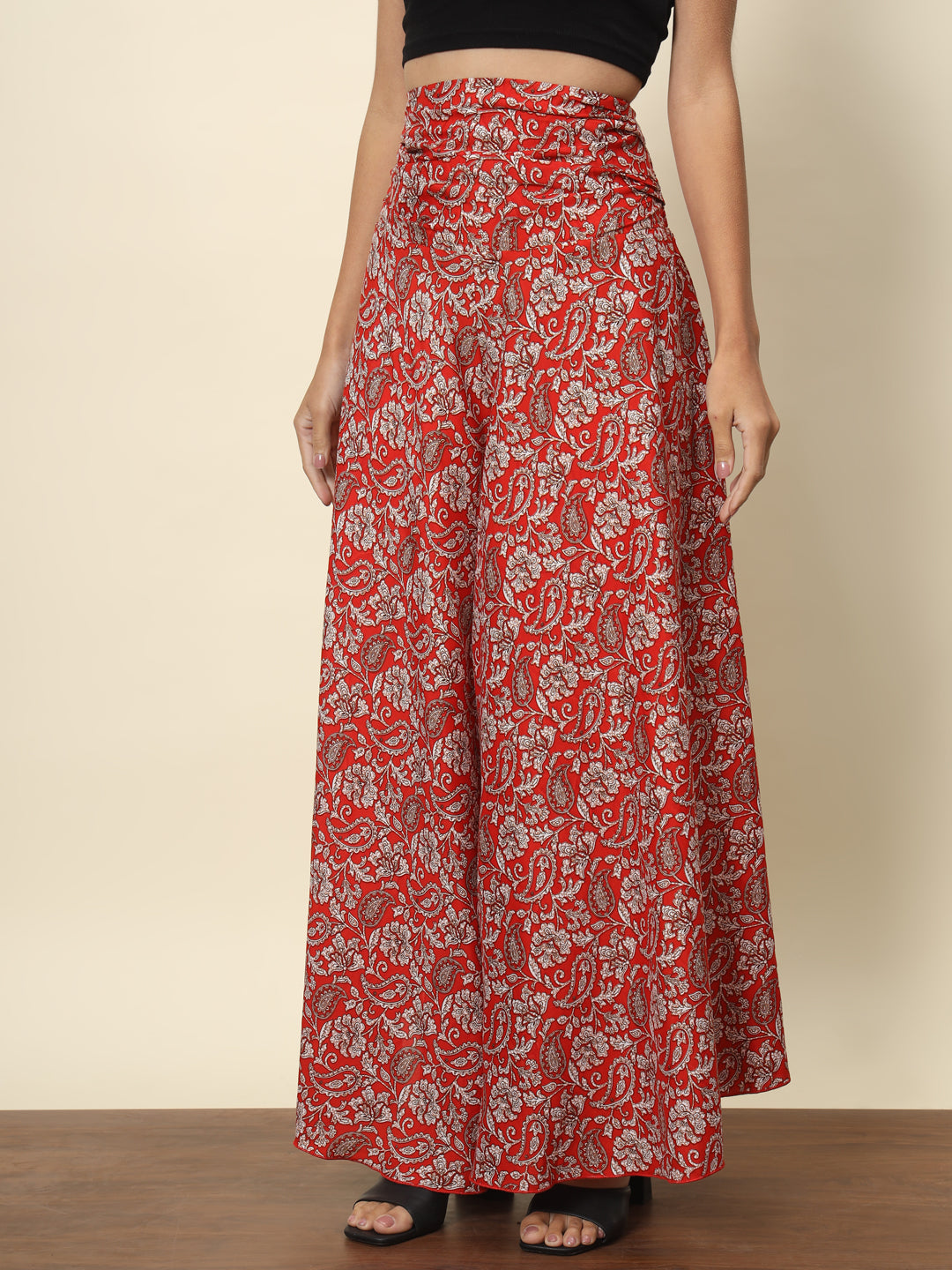 This Red Paisley Printed Palazzo. The style and comfort of this stunning set make it a must-have in your wardrobe. Pair this with a pair of colourful flats and statement earrings for the perfect holiday outfit.