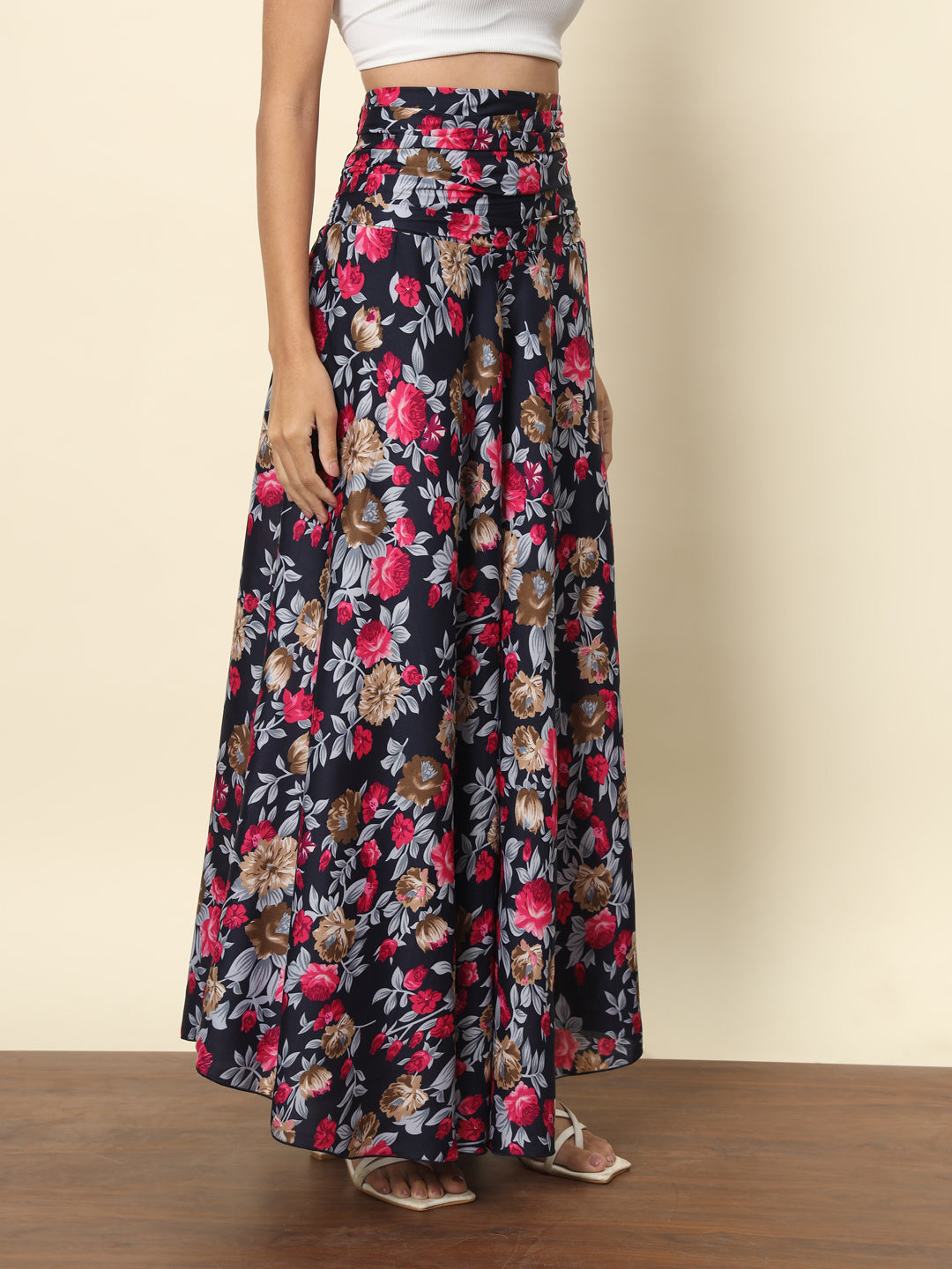 This Navy Blue Floral Print Palazzo, The style and comfort of this stunning set makes it a must-have in your wardrobe. Team this with a pair of colorful flats and statement earrings for your perfect holiday outfit.