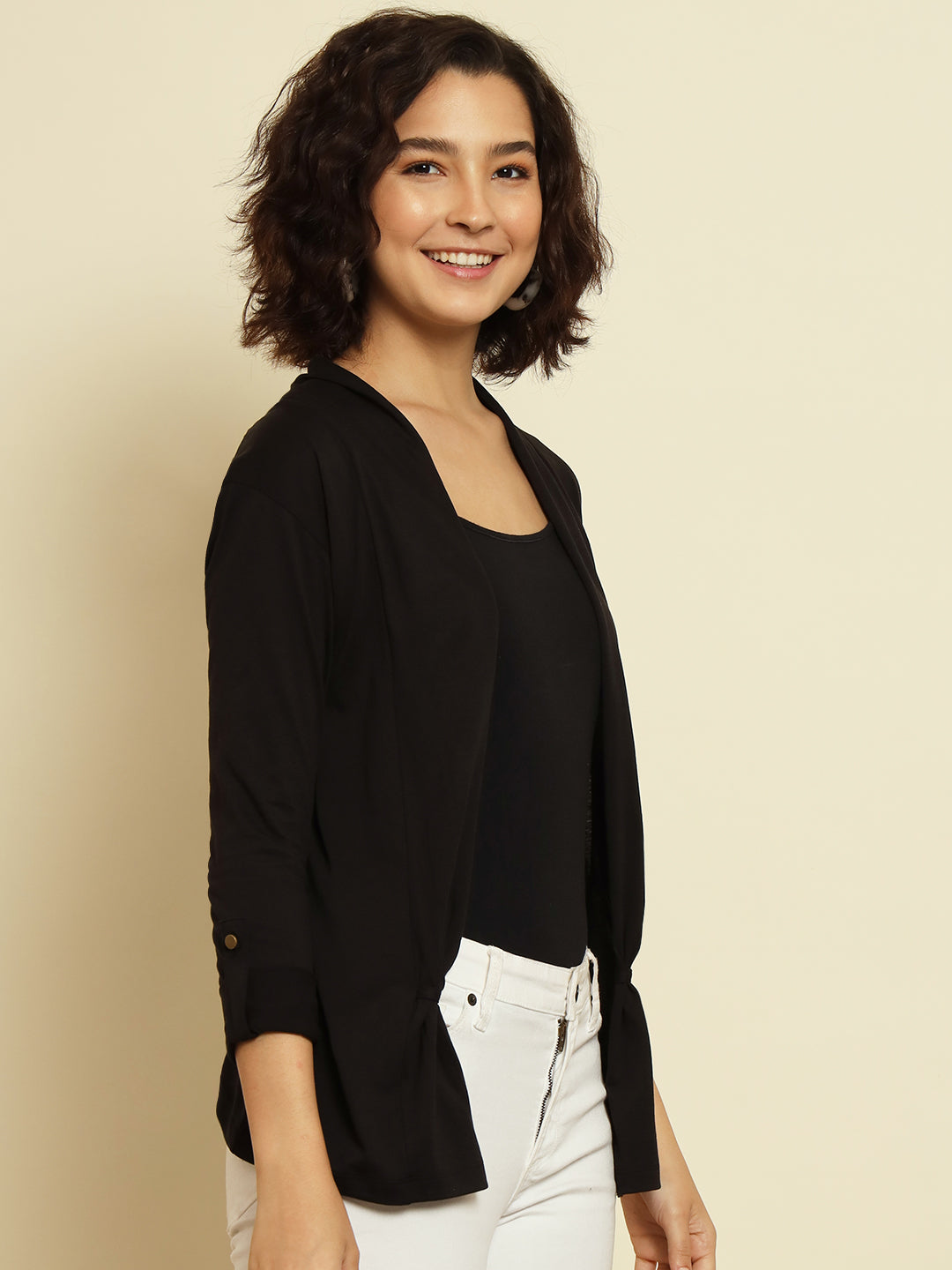 This shrug from Trend Arrest features flared style hem. The style and comfort of this stunning shrug makes it a must-have in your wardrobe. Team this with basic top and statement earrings for your perfect outfit.