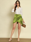 Put an elegant look by wearing this Green Solid skirt from Trend Arrest. Made to accentuate any body type, the collection will surely give you that extra oomph and make you stand out wherever you go wearing this. The product material also keeps you comfortable throughout the day. Club it with contrasting pumps and minimal fashion accessories; and of course, don't forget to wear your pretty smile though!