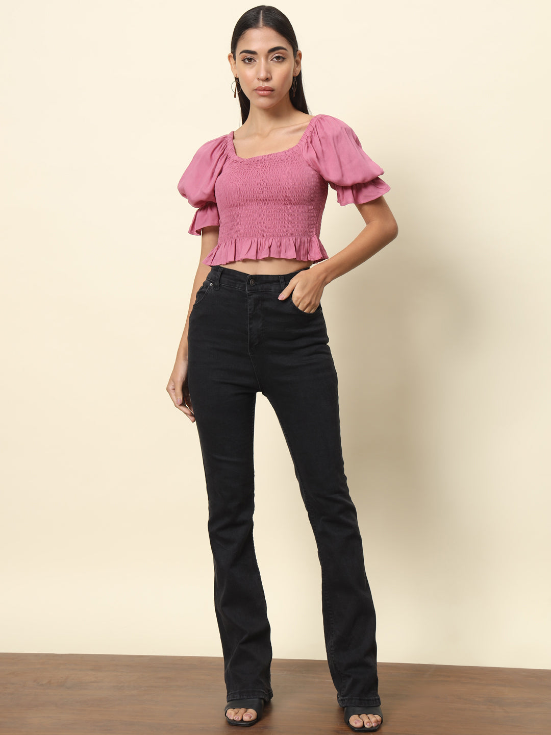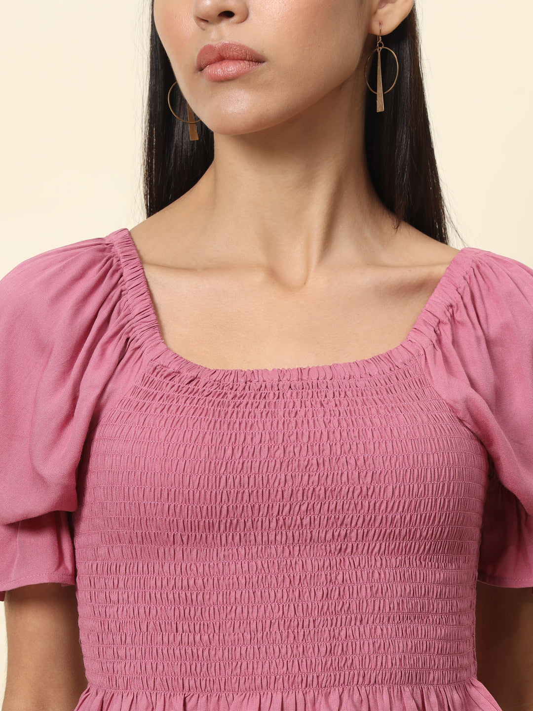 This Pink Smocking Top. The style and comfort of this stunning set make it a must-have in your wardrobe. Pair this with a pair of colourful flats and statement earrings for the perfect holiday outfit.