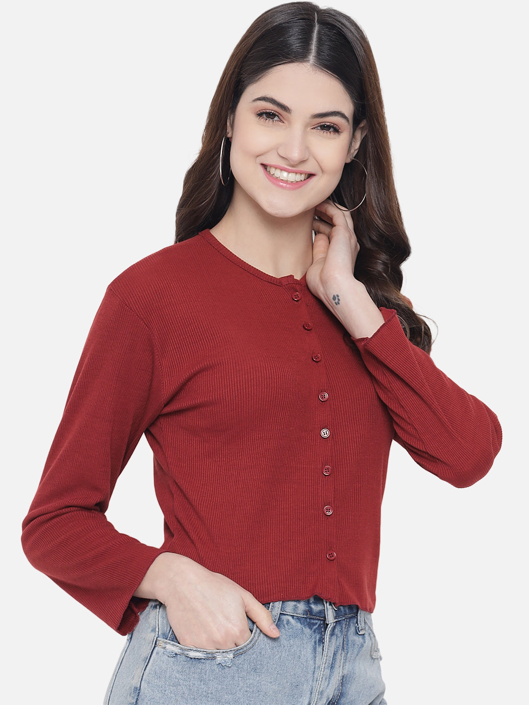 The Rust Full Sleeves Rib Top features a rich, warm hue complemented by a textured ribbed fabric that adds depth and dimension. Designed for a snug yet comfortable fit, its full sleeves provide coverage and versatility across seasons. This top is ideal for layering or wearing alone, offering a refined, polished look suitable for both casual and professional settings. Pair it with jeans or tailored trousers to enhance your wardrobe with understated sophistication.