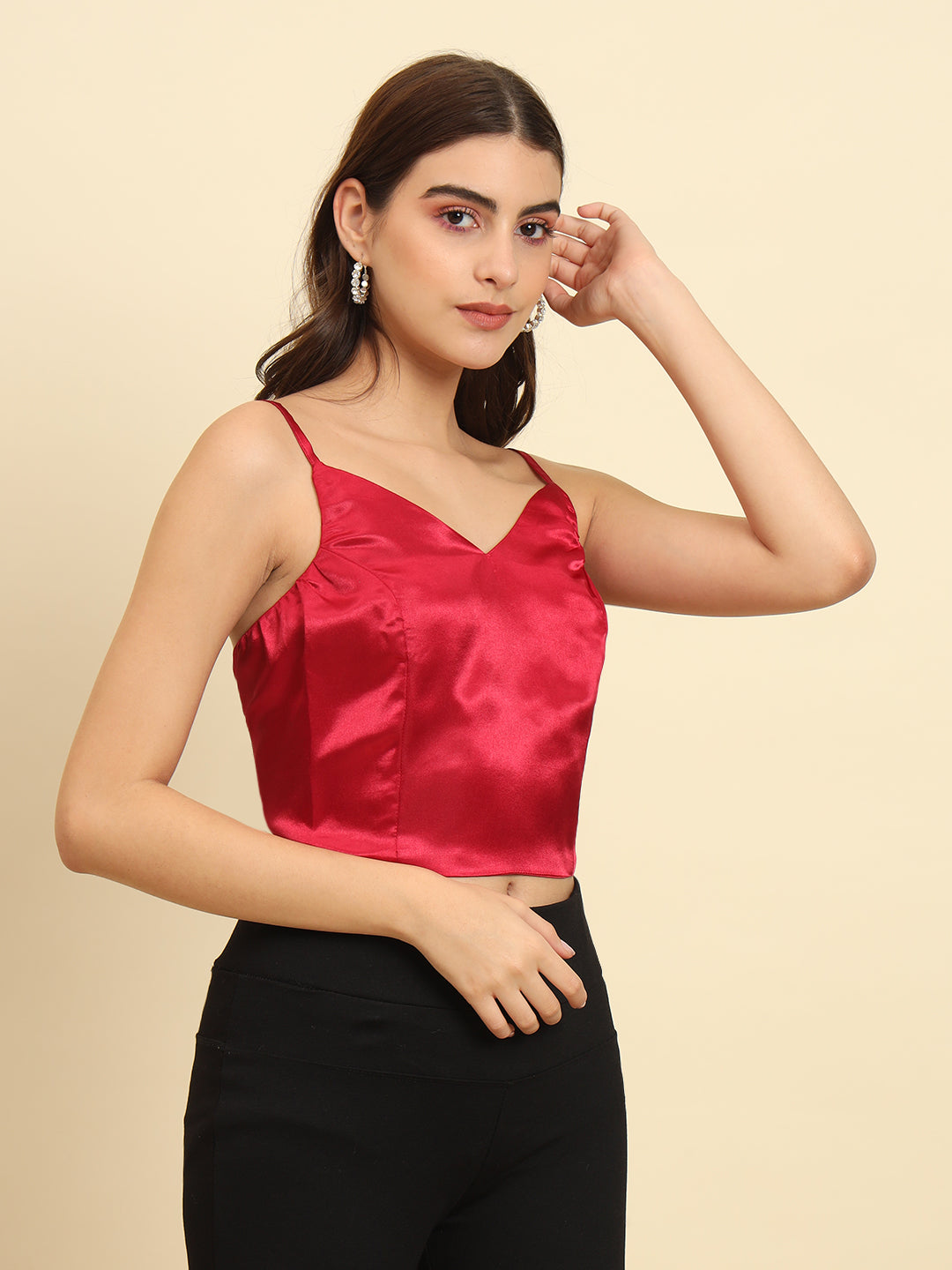 Bedazzle all the eyes around you with this chic and elegant top for women from Trend Arrest. Made from breathable satin fabric. Pair this top with straight-fitted jeans. Accessorise with dangling earrings and heels.