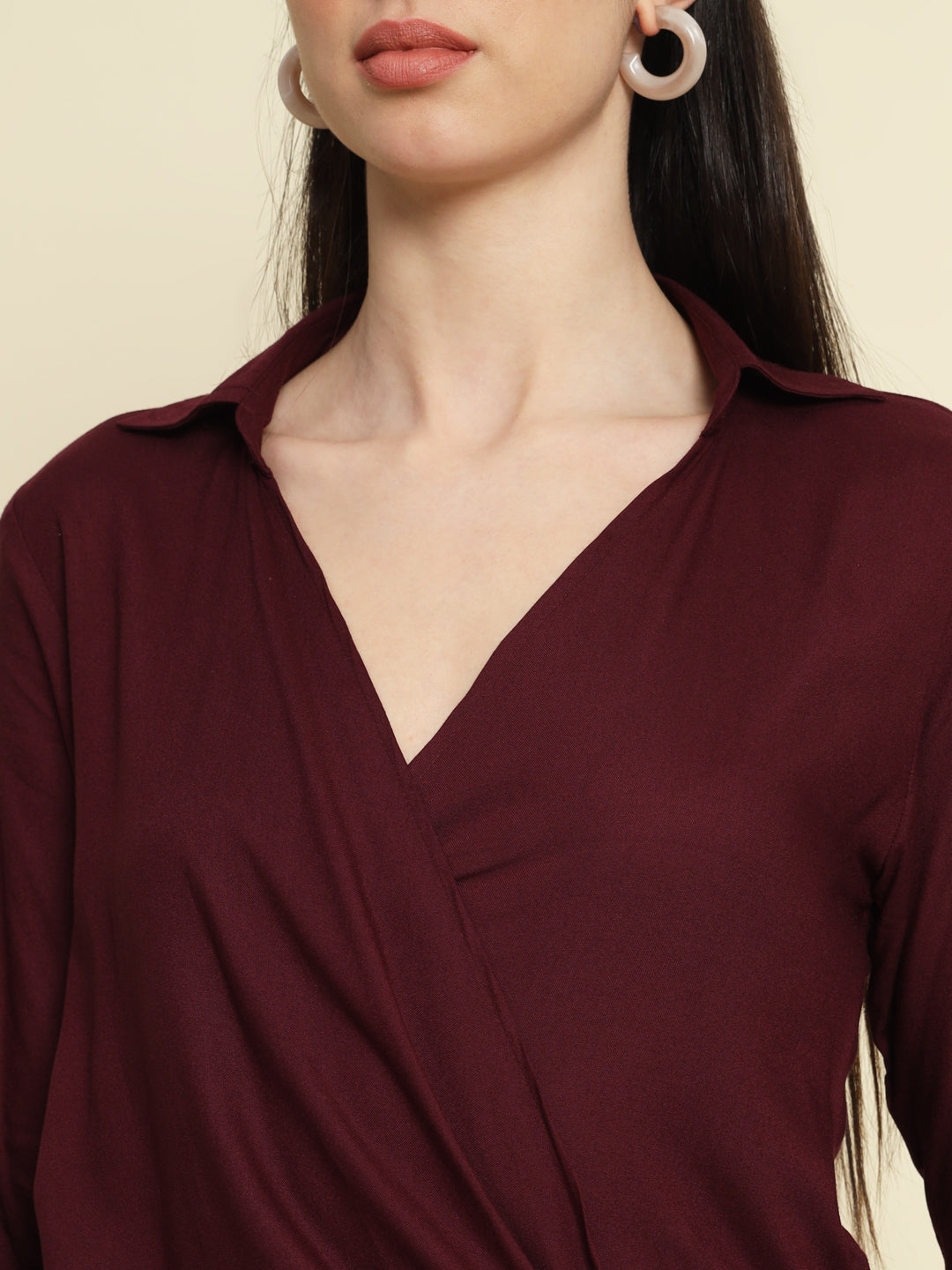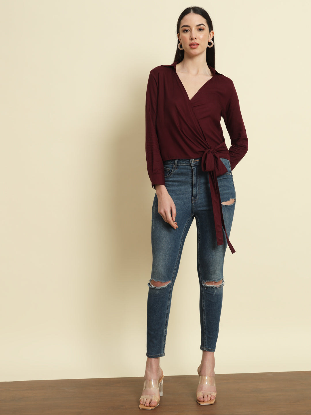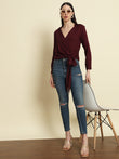This maroon wrap too. The style and comfort of this stunning set make it a must-have in your wardrobe. Pair this with a pair of colourful flats and statement earrings for the perfect holiday outfit.
