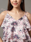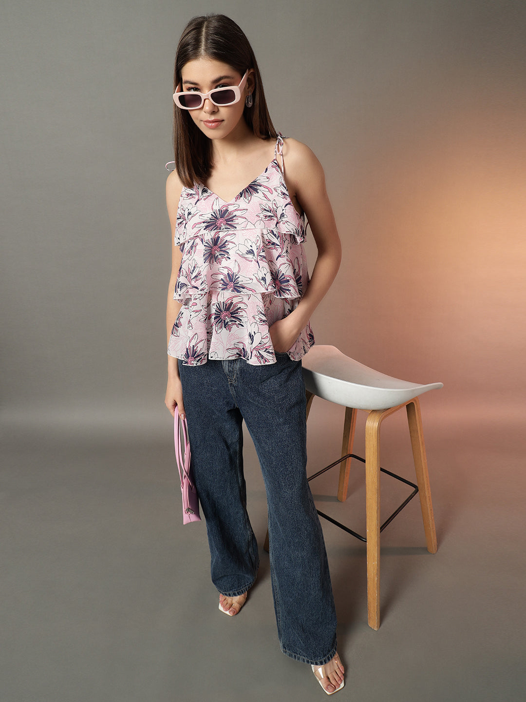 The Floral Tie-Up Tiered Top features a vibrant floral print with a flattering tie-up front and tiered design. Perfect for casual days, it offers a relaxed, breezy fit with feminine charm.