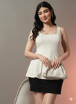 ?? Flattering Silhouette Meets Timeless Elegance! Discover effortless style with this ivory fit & flare peplum top. The contemporary square neckline and dramatic scoop back blend sophistication with modern flair. The bodice hugs gently before flaring into a full peplum hem, while wide straps provide comfort and support. Pair with pencil skirts, trousers, or denim for polished workdays or chic evenings out.