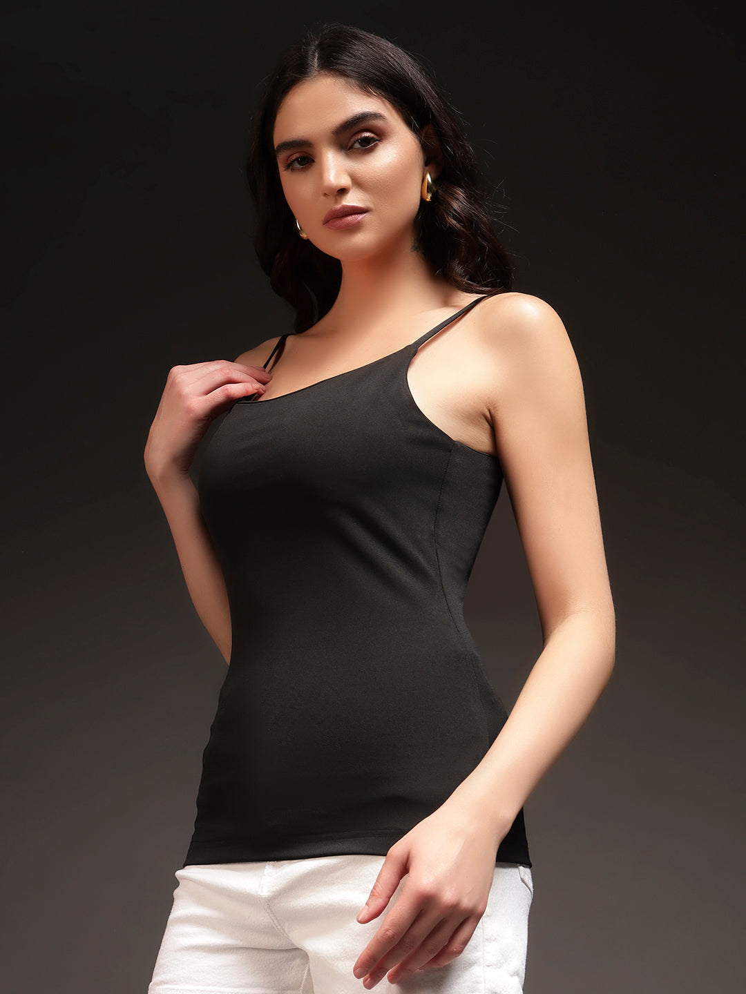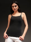 Discover Flattering Comfort All Day! Elevate your basics with this black padded cami top. Thin adjustable straps and a fitted silhouette give you versatile styling and great support, while the soft stretch fabric keeps you comfortable from morning to night. Pads are sewn-in for subtle lift—wear it solo or as a sleek layer in any outfit.