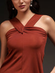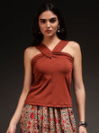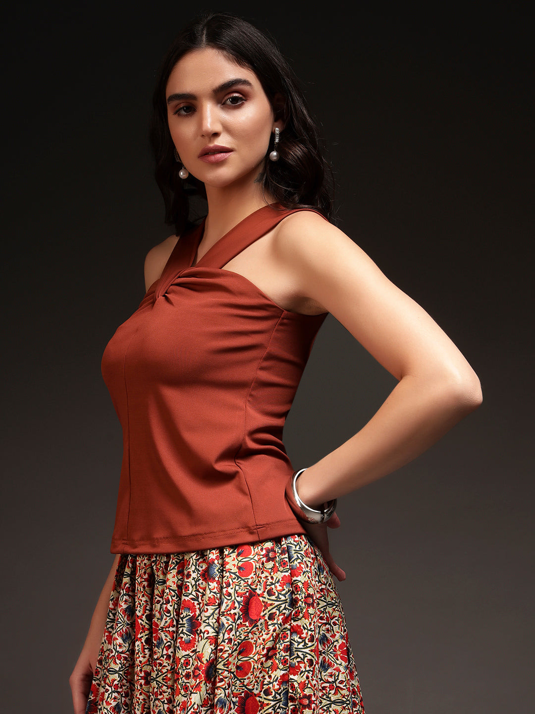?? Make a Style Statement In Every Setting! Show off your bold style with this rust brown twist strap top. The unique front twist strap creates an eye-catching neckline, while the fitted, stretchy material hugs your figure for a confident silhouette. Perfect for elevating casual looks or finishing night-out outfits with flair.